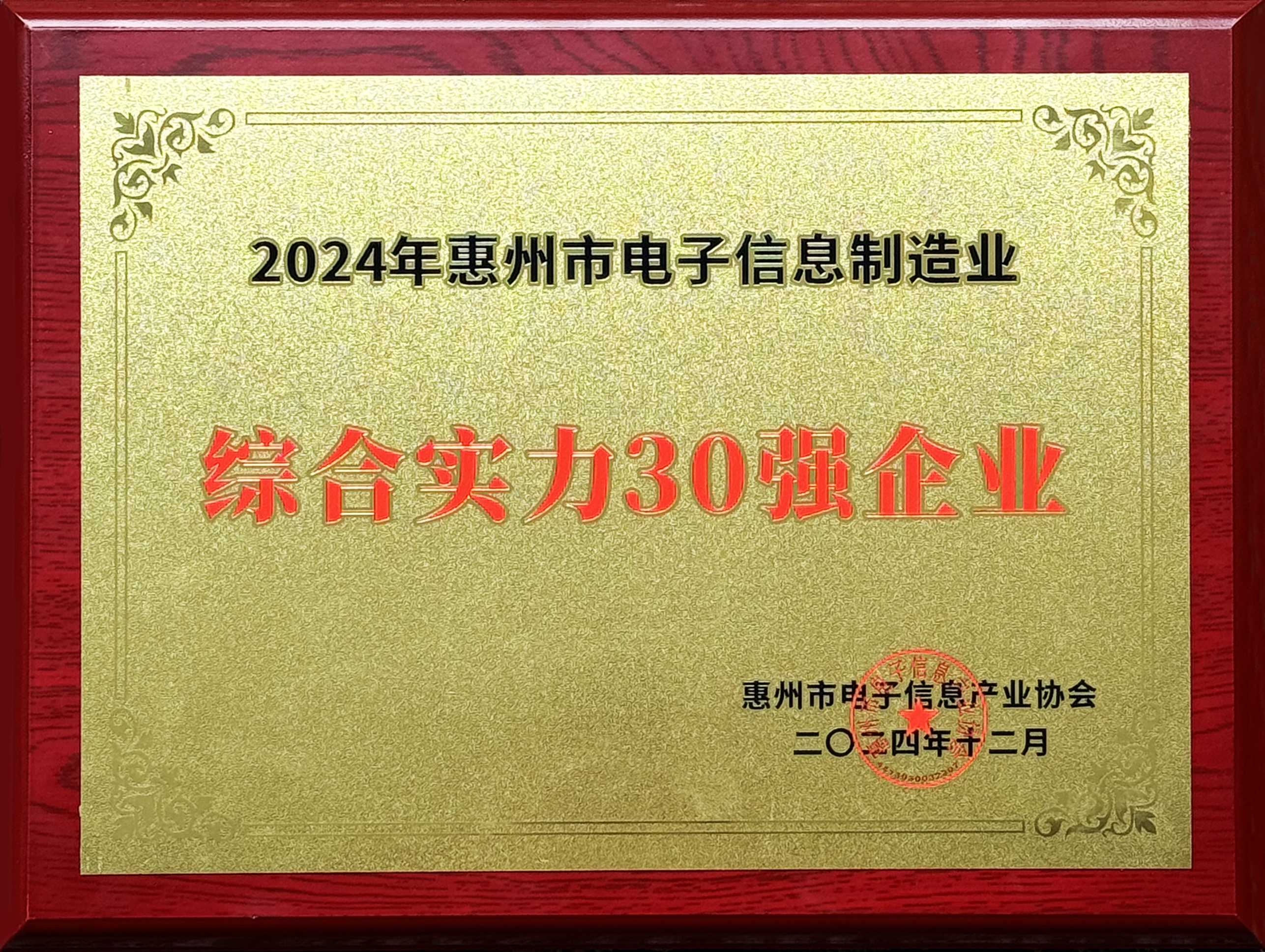 jiuyou.com九游科技荣获“2024年惠州市电子信息制造业综合实力30强企业”称号