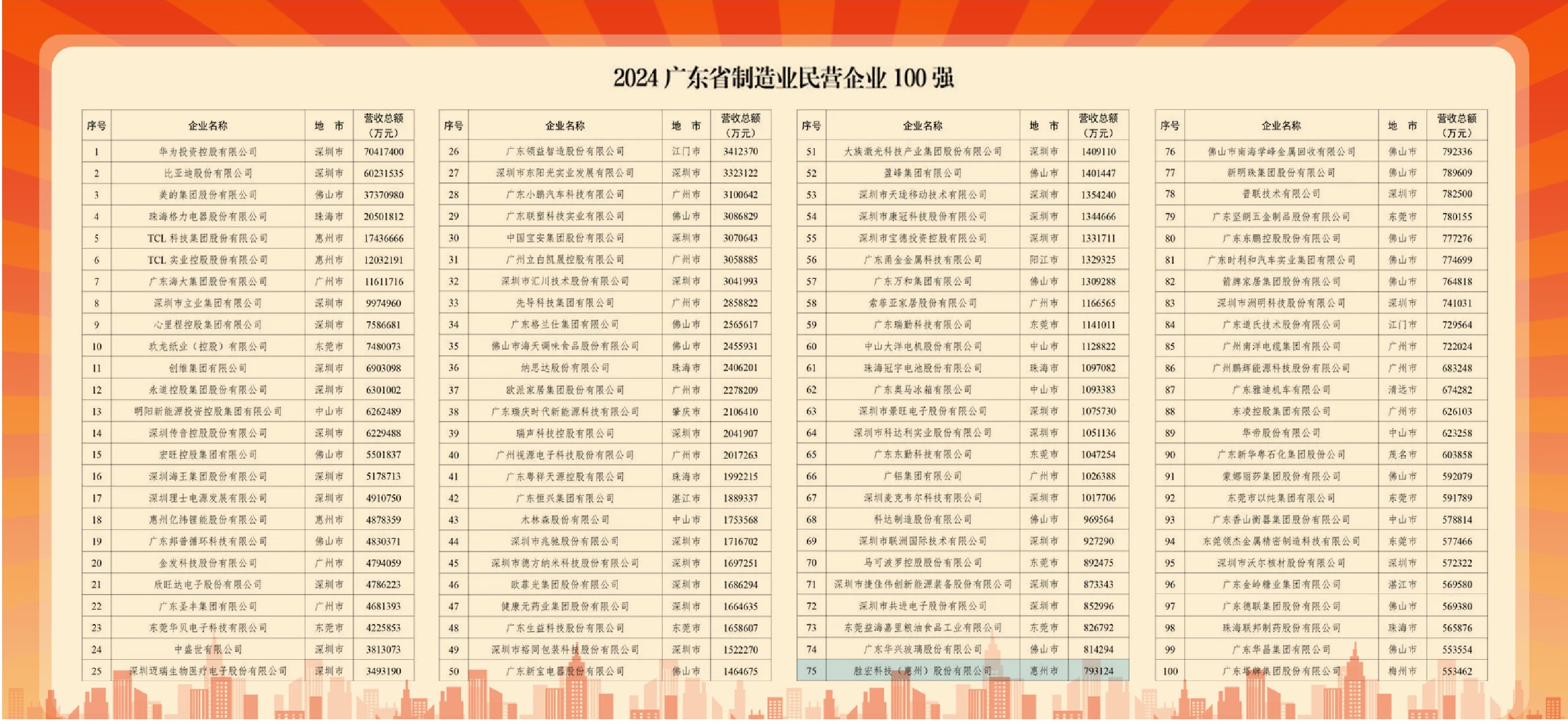 jiuyou.com九游科技荣登2024广东省制造业民营企业100强榜单